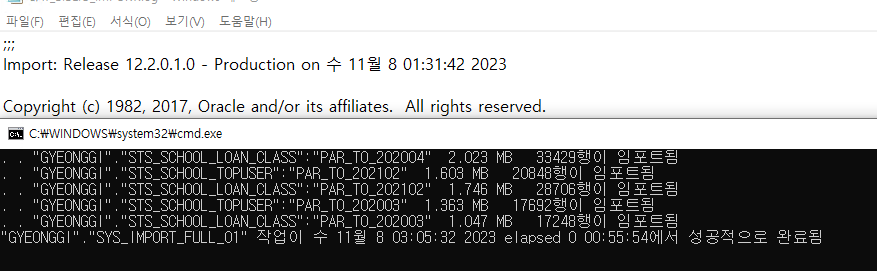 업무 특성상 오라클DB의 덤프파일을 import/export하는 일이 종종 있다.