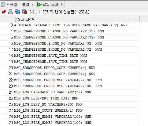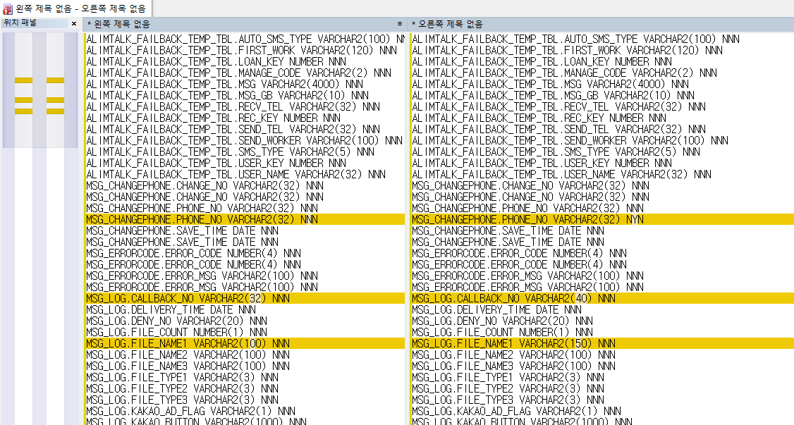 하지만 수백, 수천개의 컬럼들을 일일이 비교하는 데에는 상당한 무리가 따르기 때문에 아주 쉽고 간단하게 스키마를 비교할 수 있는 스크립트를 작성했다.