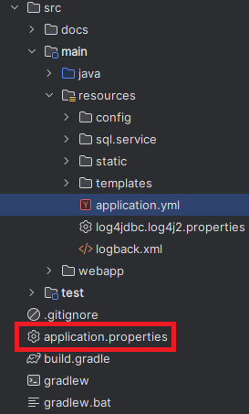 다만 차이가 있다면, 빌드해서 배포파일을 만들때 application.yml은 배포파일 안에 들어가고 application.properties는 배포파일에 포함되지 않는다는 것이다.