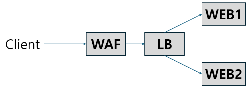 일단 의심스러운 부분은 WAF → LB 와 LB → WEB 이다.