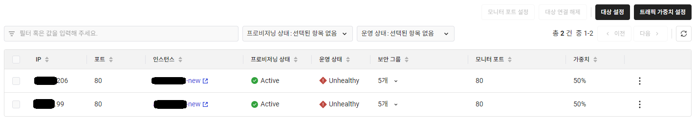 그러던 도중에 LB설정에 빨간 불이 들어와 있는 것을 발견하게 되어, 이 것부터 고쳐보기로 했다.